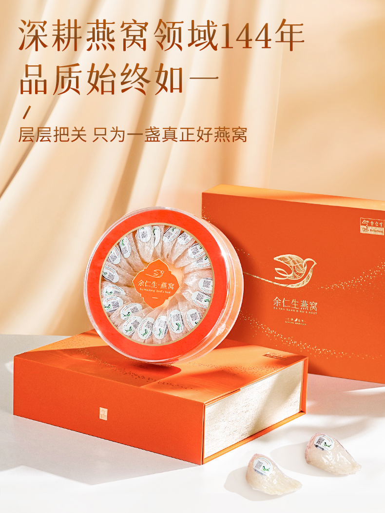 余仁生白燕窝H1金丝燕干燕盏100g进口溯源孕妇滋补送礼礼盒官方