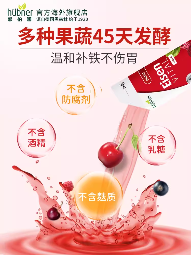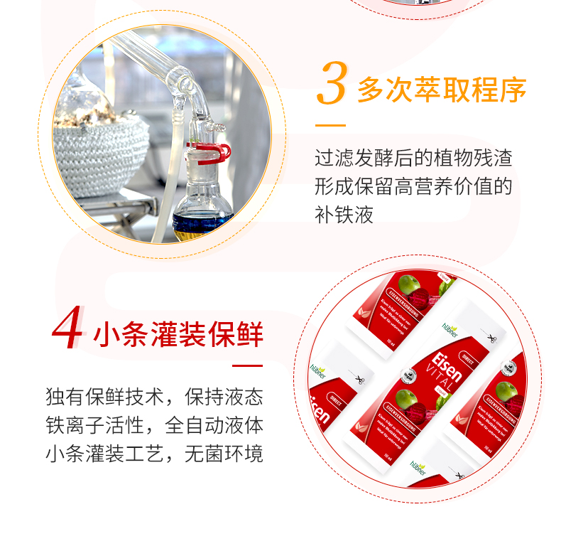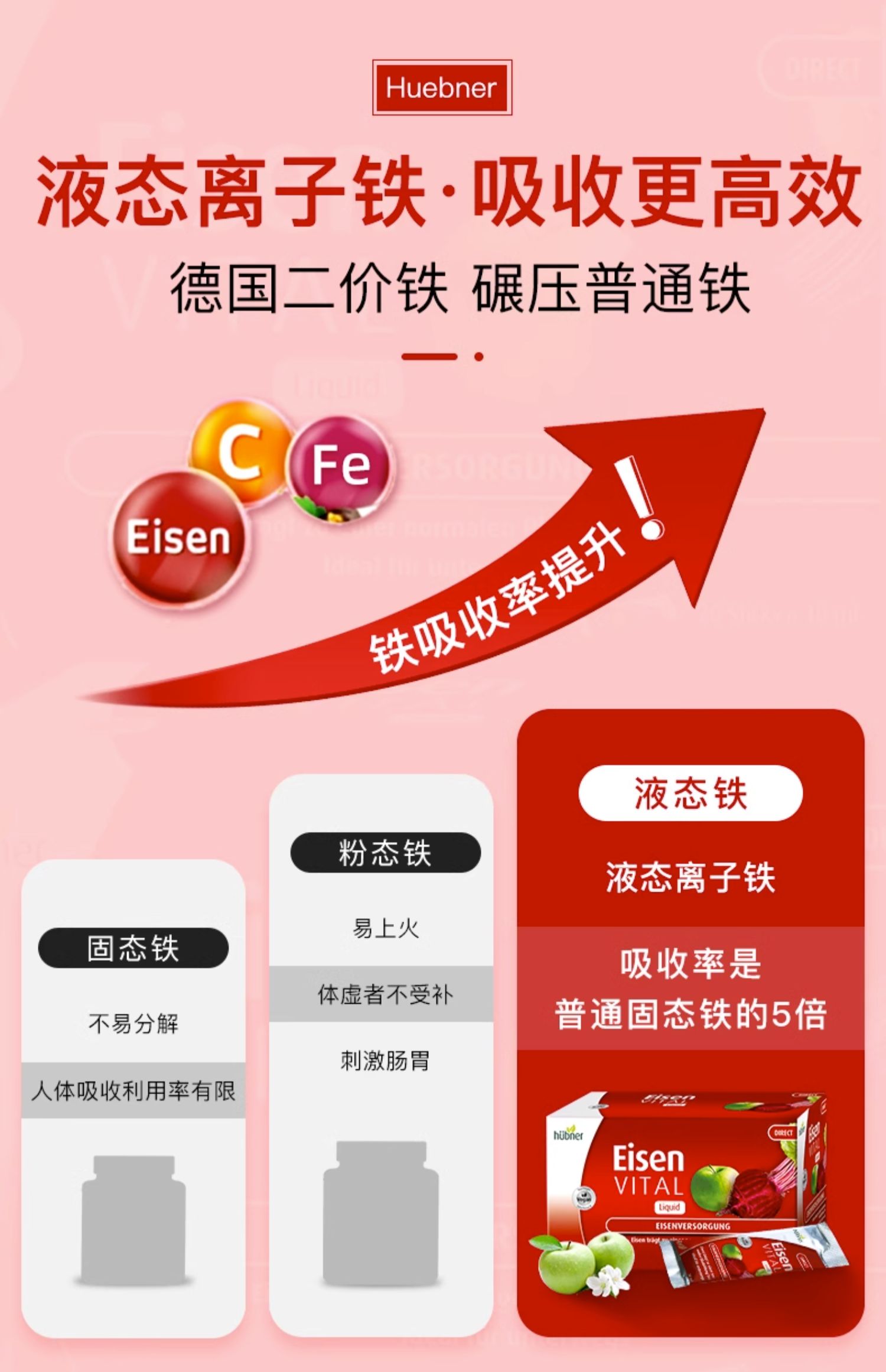 Eisen补铁气血口服液女直营Huebner便携铁剂3盒